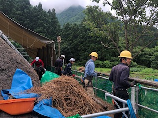 茅葺職人技能士スキルアップ講習 2020年7月18日 ブログ 五箇山合掌の里で「茅葺職人技能士スキルアップ講習」 「相当勉強になる」と好評の講習となりました 様々な現場を体験していくことが大事ですから スキルアップ講習は続けていきたいと思います。 多くの仲間が全国で 「事例をつくり」「経験を積み上げる」から「市場創造」されます。 そんな五箇山でもオンラインmt 便利な時代になりました。 今日は射水市さんとお打ち合わせです。