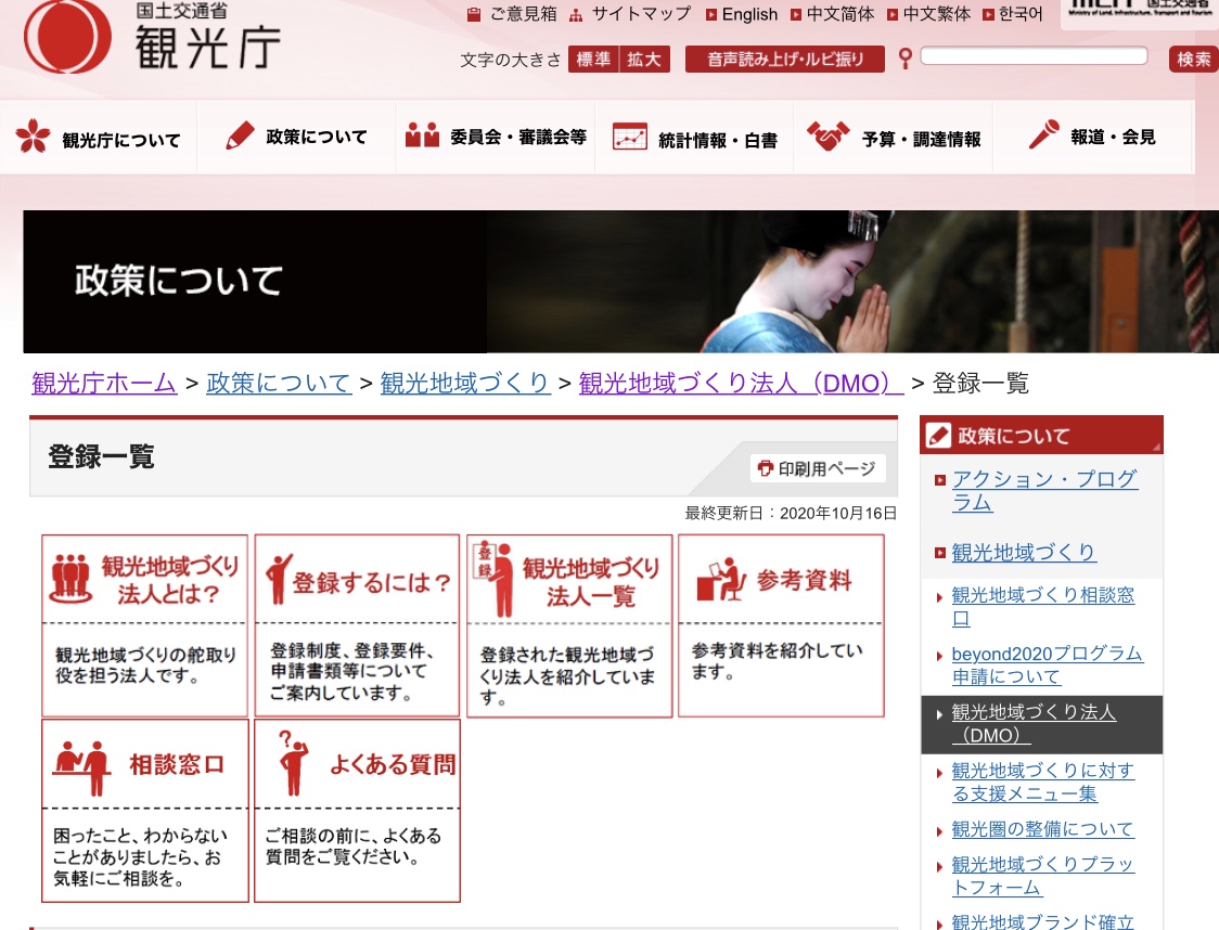 観光庁より新たな【観光地域づくり候補法人】(DMO)が発表されましたml