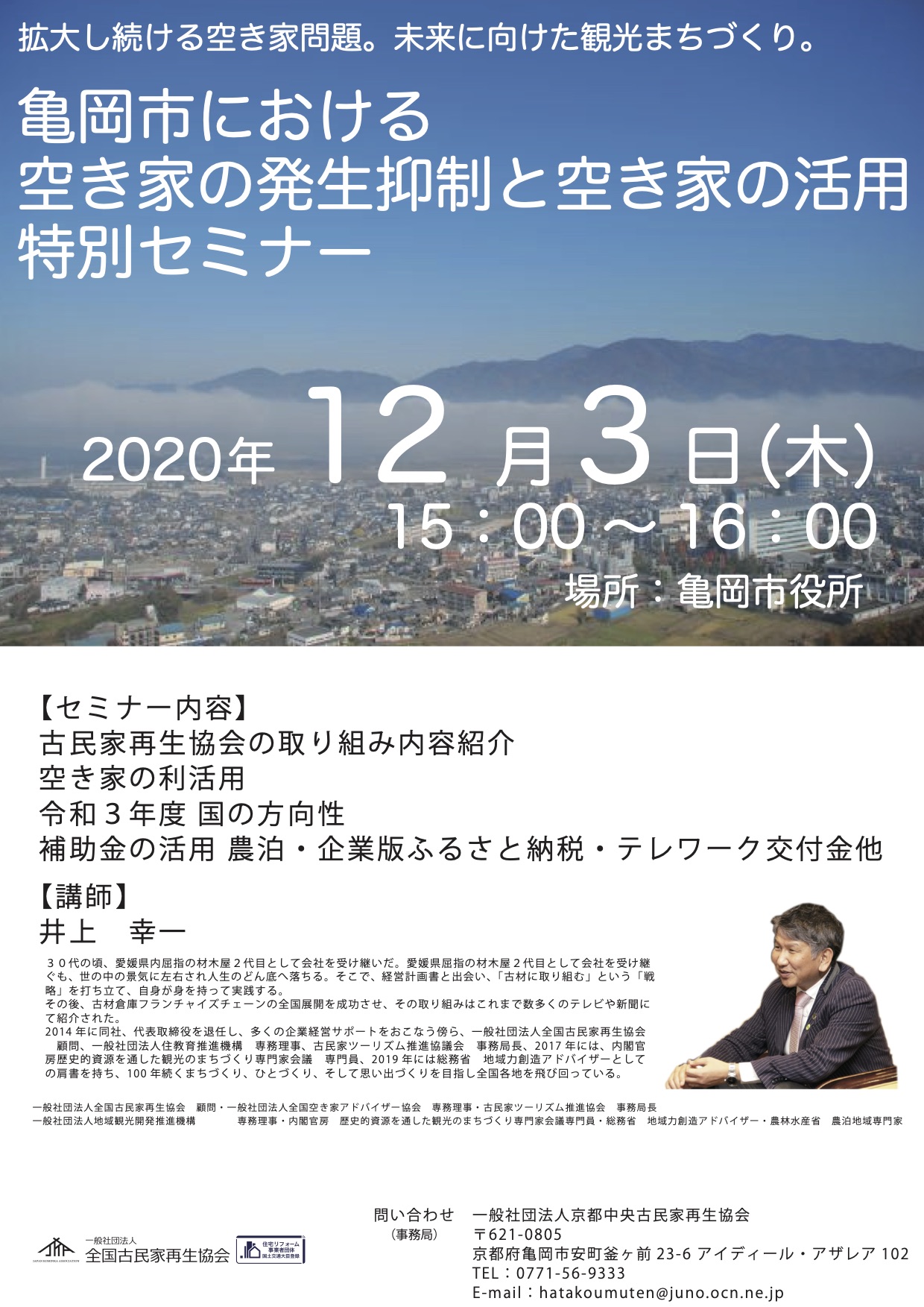 亀岡市にて 2020年12月4日 ブログ 亀岡市にて 『空き家課題解決』セミナー 亀岡市は【農業✖️テレワーク】で空き家課題解決するといいと思います。 そんなお話を 「議員さん✖️役所の職員さん」にお聞き頂きました。 「いい化学反応が起こるといいなぁ〜」そう思います。