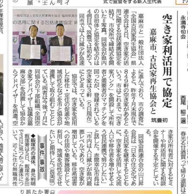 古民家再生協会と空き家アドバイザー協議会 2021年4月7日 ブログ 嘉麻市との協定・・・・ この記事はわかりやすいです。 ポイントは 1、古民家再生協会の都道府県連合会でサポート 2、自治体ごとの空き家アドバイザー協議会で実務 です。この仕組みは他の団体ではできないことなんだと思います。