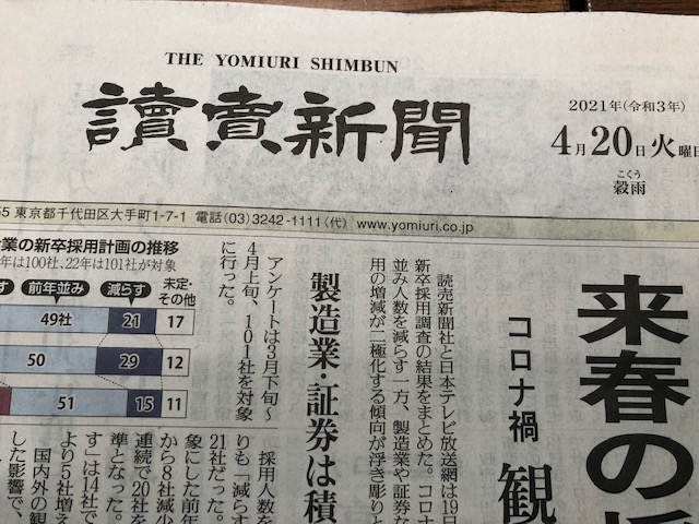 読売新聞にて 2021年4月20日 ブログ 今「古民家再生物語」のご紹介をいただきました。 もう出版され3年も経とうというのに・・・ありがたいですね。 優しいお家も好調に多くの方に読んで頂いています。 多くの「家づくりの想い」を感じてほしいと思います。