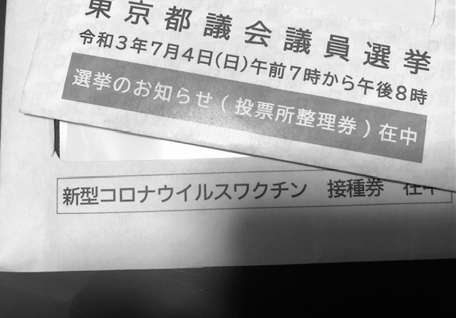 届きました 2021年6月27日 ブログ 都議会選挙と共に 東京に届いたワクチン接種券 新型コロナウイルスワクチン接種は各地で行われていて 東京のオフィスのビルは企業の職場接種会場 愛媛のオフィスは集団接種会場になっています。 東京オリンピックに向けて一気にそれは進んでいますね。 選挙もワクチンも行かなきゃ!!(笑)