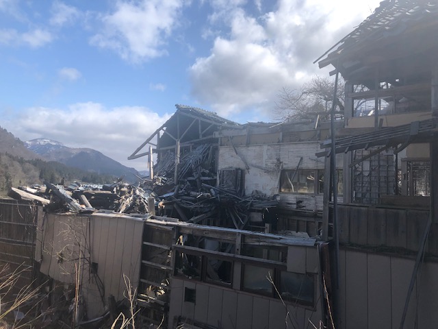 阿賀町にて 2022年4月9日 ブログ 自然は素晴らしい・・・・ 阿賀町で「地域再生計画」を策定します。 この写真をとった宿に泊まっているのですが、お隣の宿は 「民間の持ち物だからしょうがない」では済まされないと私は考えます。 官民連携で「地域課題を解決する」 【地域再生計画策定会議】を開催しました。 まだ雪が残る新潟で「雪解け」が始まります。