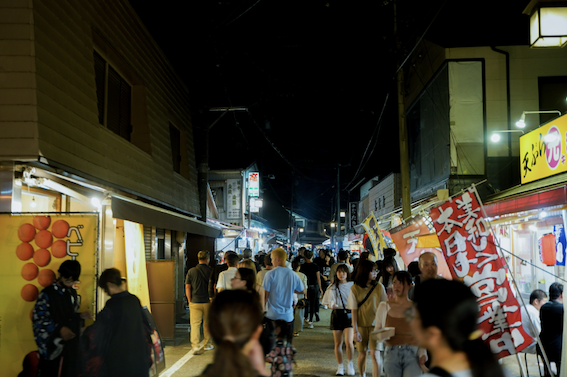 参道に約120軒の店が軒を連ね夜通し参拝客で賑わいます。