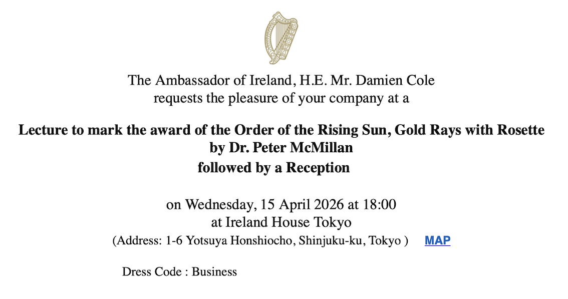 アイルランド大使館でピーター・マクミラン博士の