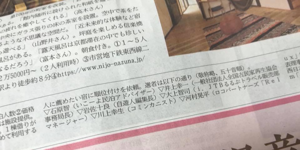 昔話の郷愁に浸れる古民家の宿10選 2018年3月18日 古民家 昔話の郷愁に浸れる古民家の宿10選(日経) 日経新聞特別版 日経プラス1で特集された古民家の宿10選の選者の一人として 参加させていただきました。