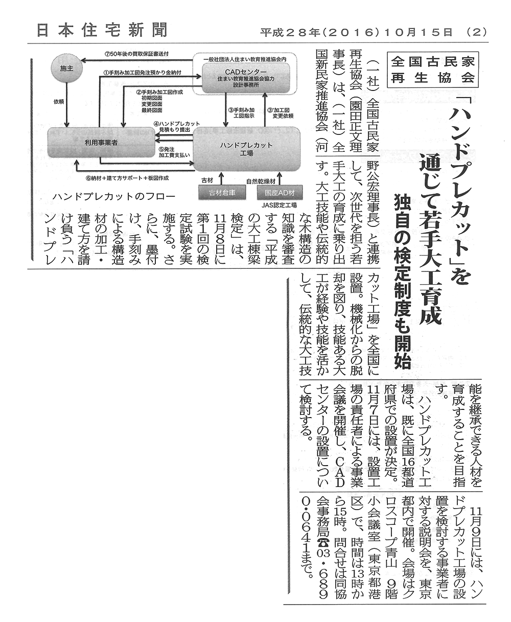 若手大工育成事業に注目が集まっています。