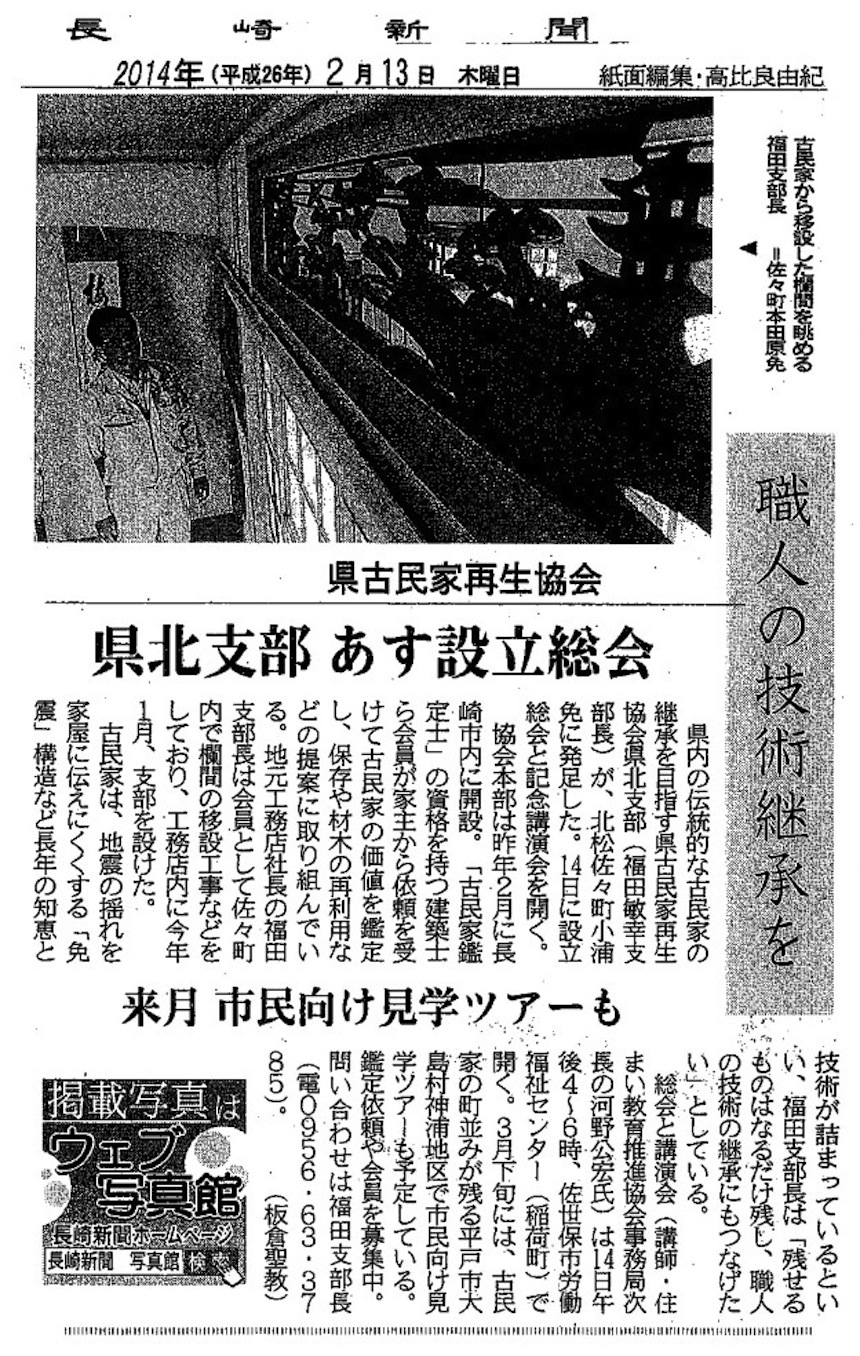 今年も各地で「古民家再生協会」が立ち上がります 2014年2月15日 ネットワーク 昨日は長崎で支部設立総会 今年も千葉・福井・・・・・・そして長崎と古民家再生協会設立 間もなく熊本でも設立されます。 いい仲間が増える・・・嬉しいことです。