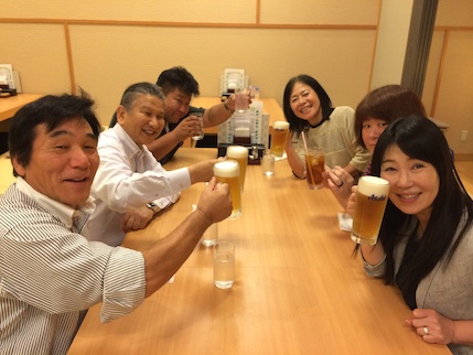 熊本例会 2014年6月17日 ネットワーク 3回目の例会・・・太田理事長だいぶん慣れてきたかな? 「学習プログラム」の伝統住宅の学び・・・・ 「屋根」「石」「床材」など・・・盛り上がりましたねぇ。 皆が「経験からしゃべる!しゃべる!!」楽しい会となりました。 終了後は・・・・ 太田理事長ご夫妻、中川理事長ご夫妻と・・・妻・光子と・・乾杯!!