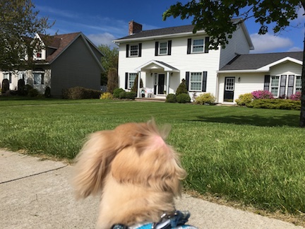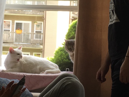 散歩疲れの「レオン」を「レン」が優しく遠くからみています。