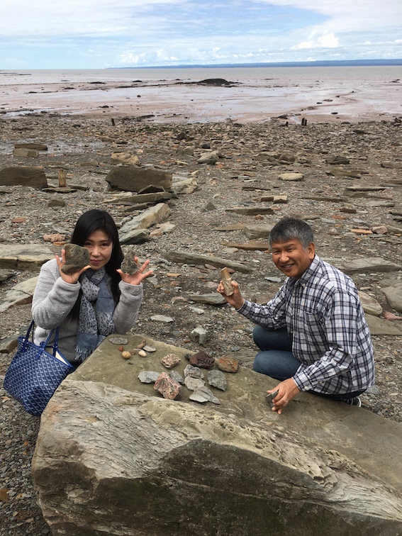 ジョギンズ 2017年6月16日 雑学 世紀の化石を発見 妻は「これ化石ですか?』と学者さんに聞きに行くと 「はいそうです」と没収されました。(席に大発見だったんだ・・・) このジョギンス、この海が 干潮になると こうなって化石の宝庫になるんです。誰でも見つけられます。 1日無料で遊べる・・・楽しいドライブでした。 明日カナダ最終日・・・ 今夜は次女がホームステイでお世話になったお宅にお呼ばれです。