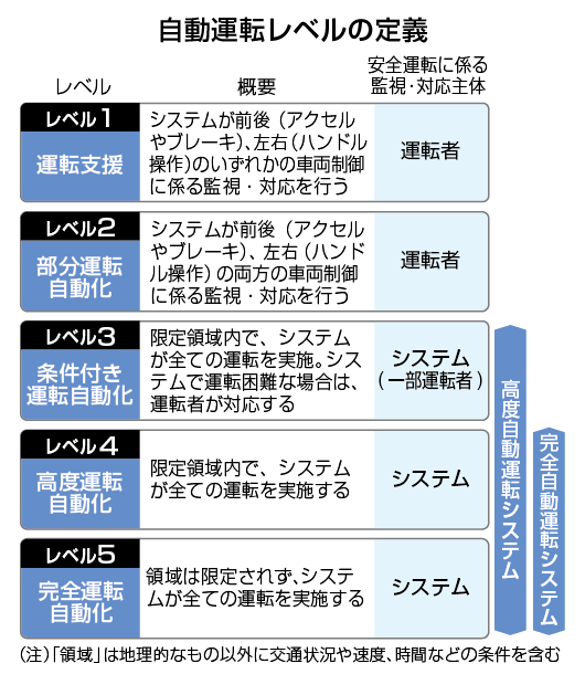 自動運転のレベルの定義